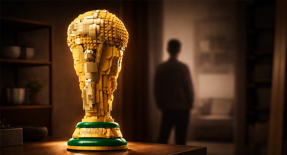 Você provavelmente sabe exatamente onde estava quando o Brasil perdeu de 7 a 1. Sabe o que sentiu. Talvez lembre até da cadeira em que estava sentado. É esse tipo de memória que a Copa do Mundo carrega. E é exatamente isso que a LEGO está vendendo nesse set: o troféu atual do torneio, em plástico encaixável, com design impecável e presença de vitrine. Um objeto que não pertence a uma única geração, que está nas conquistas mais recentes, nas imagens que circulam globalmente, no imaginário coletivo do futebol moderno. Para o brasileiro, nem precisa gostar de LEGO. O reconhecimento é imediato.